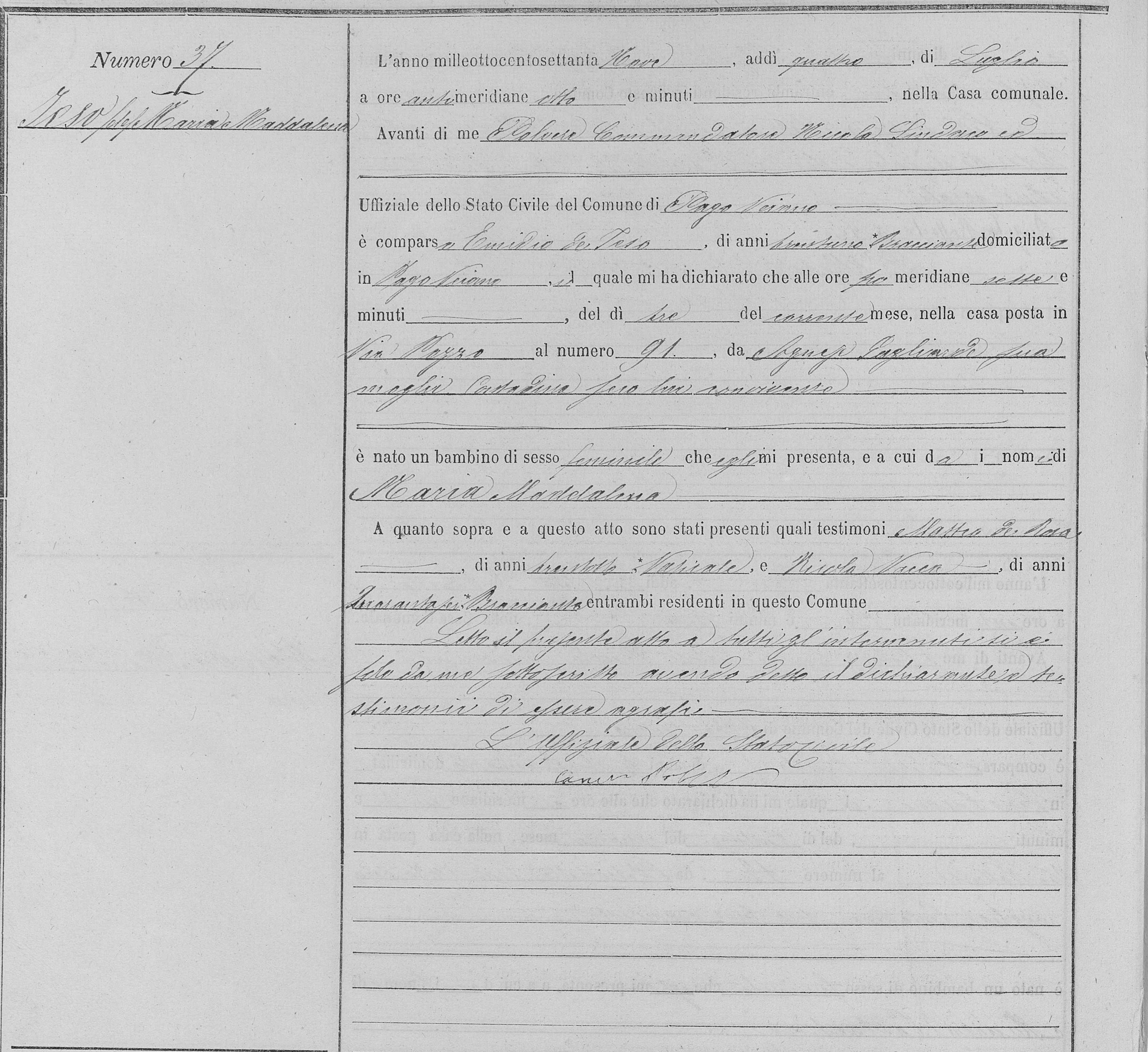 Maria Maddalena De Ieso was born on July 3, 1879 in Pago Veiano, Benevento, Campania, Italy. She and