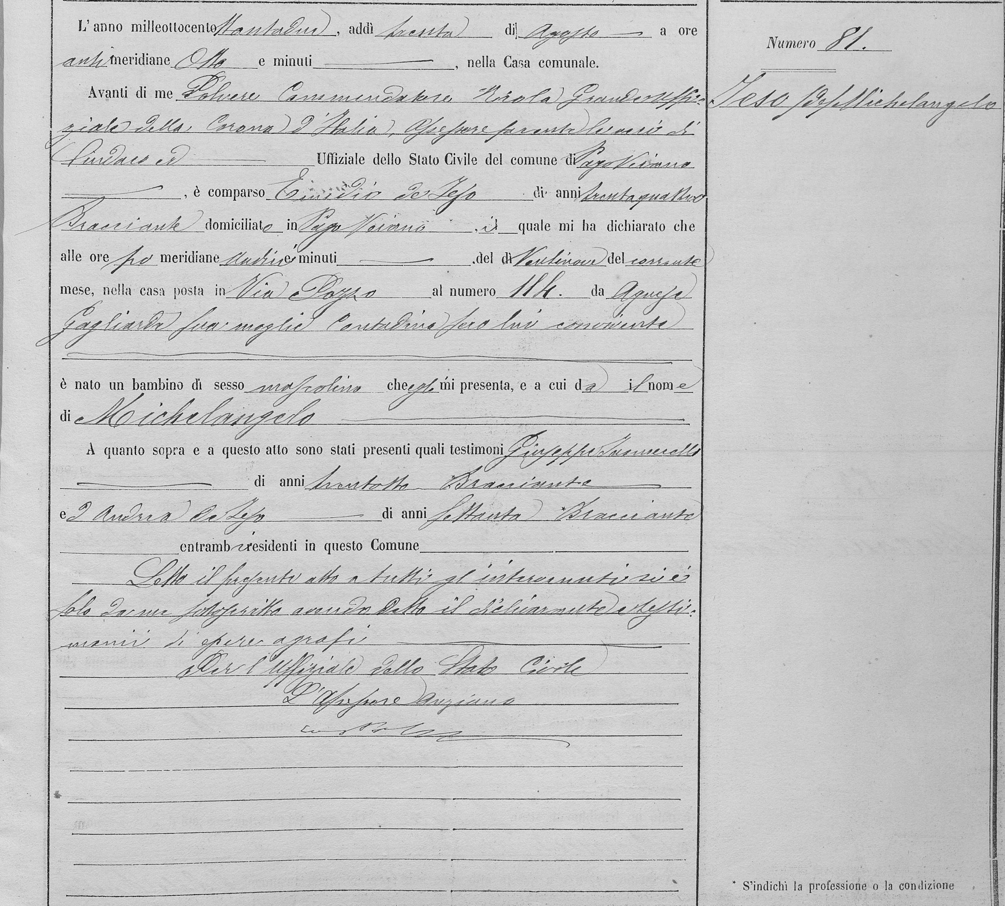 Luigi Carocci was born in 1838 in Artena, Roma, Lazio, Italy. He and