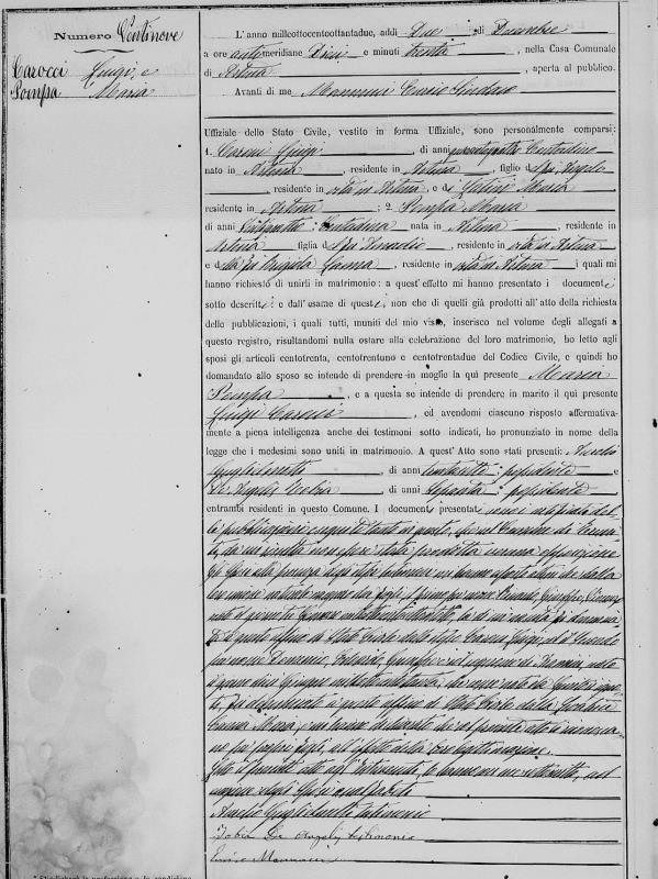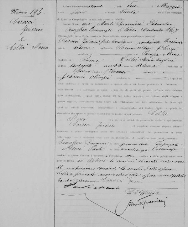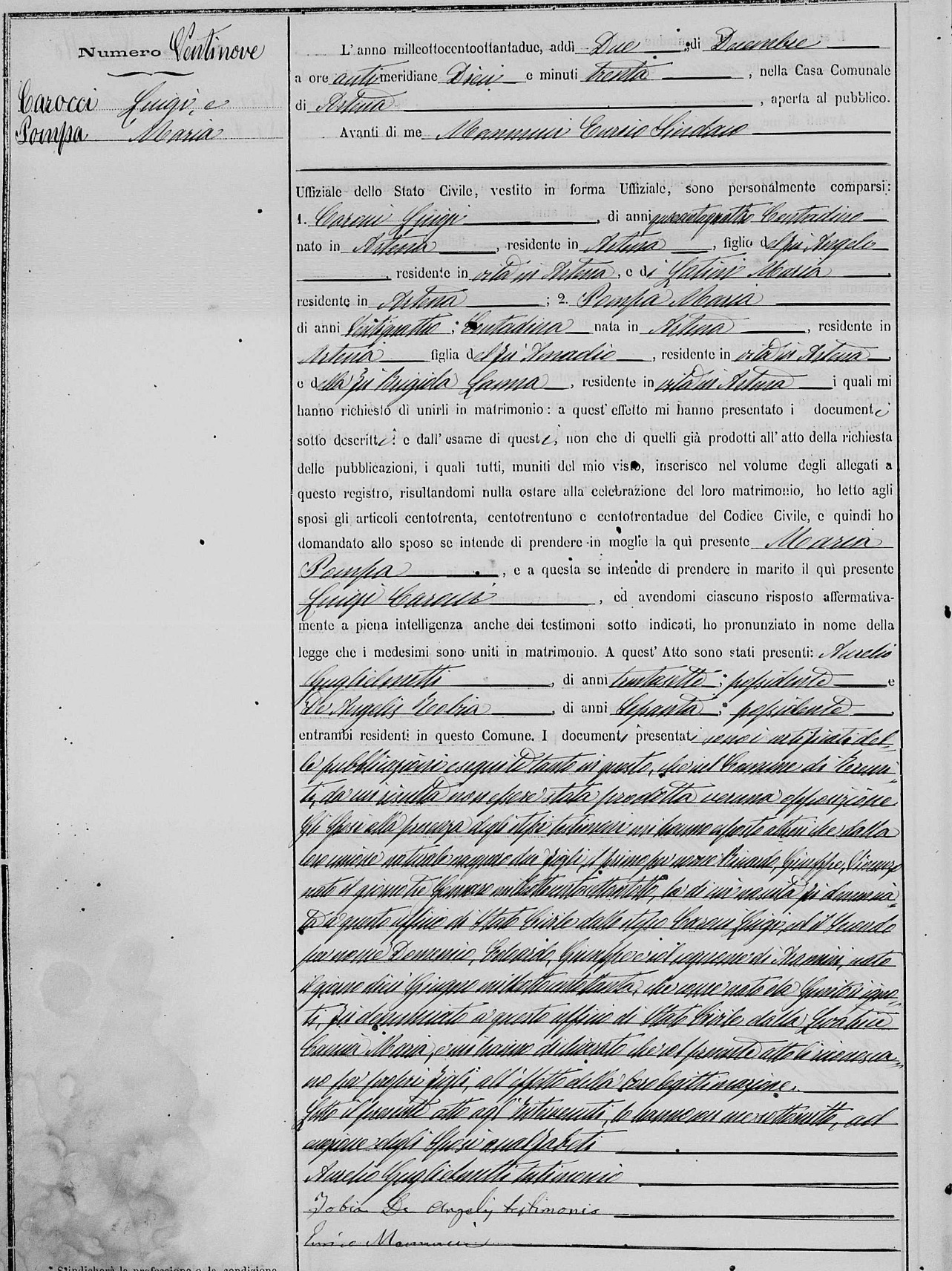 Luigi Carocci were married on December 2, 1882 in Artena, Roma, Lazio, Italy. She died.