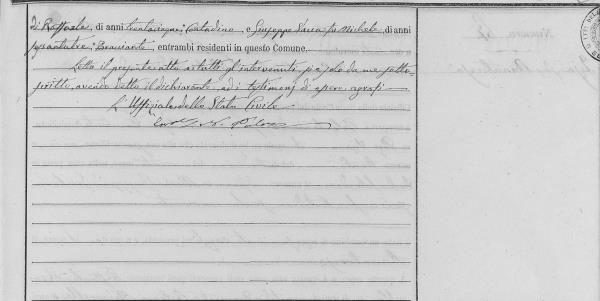Maria Pompa were married on December 2, 1882 in Artena, Roma, Lazio, Italy. He died on June 27, 1908, at age ~70, in Artena, Roma, Lazio, Italy.