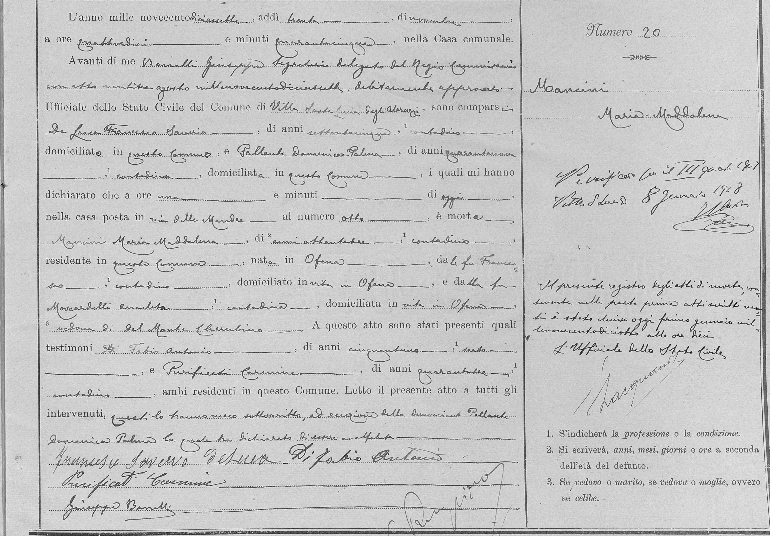 Maria Maddalena Mancini was born in 1834 in Ofena, L'Aquila, Abruzzo, Italy. She and