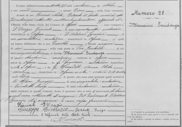 Prudenza Mancini was born in 1841 in Ofena, L'Aquila, Abruzzo, Italy. She and