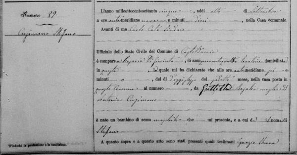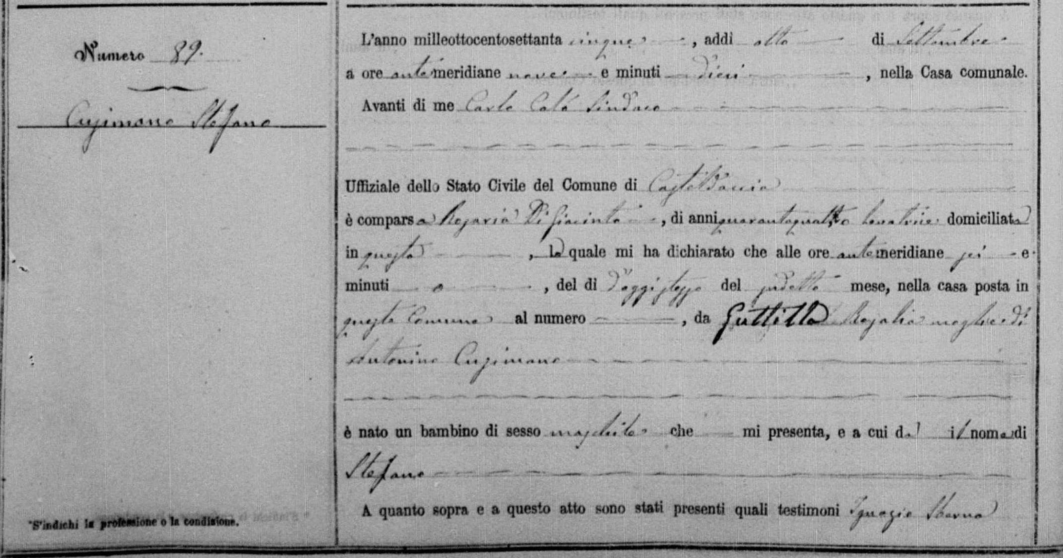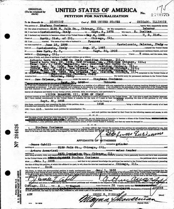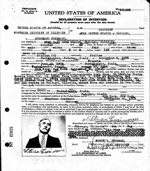 Stefano Cusimano was born on September 8, 1875 in Casteldaccia, Palermo, Sicily, Italy. He and