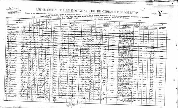 Cusimano Family 1920 Ship Departure Manifest, Lines 24-26