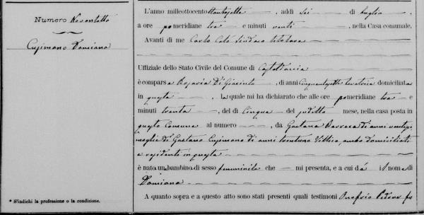 Damiana Cusimano was born on July 5, 1887 in Casteldaccia, Palermo, Sicily, Italy. She died.