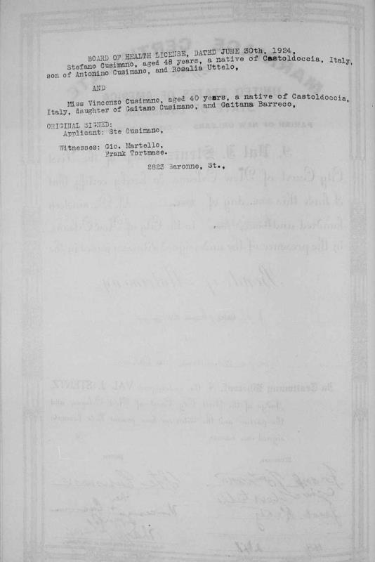 Antonino Cusimano were married on September 30, 1926 in New Orleans, Louisiana, USA. She died.