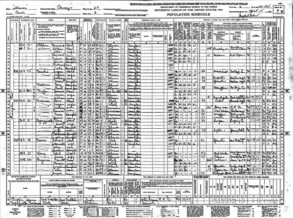Cusimano Family 1940 Federal Census Illinois, Lines 58-63