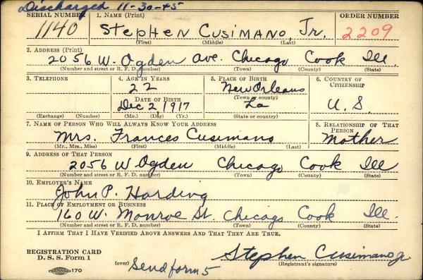 Joseph S. Cusimano was born on June 14, 1911 in New Orleans, Louisiana, USA. He and