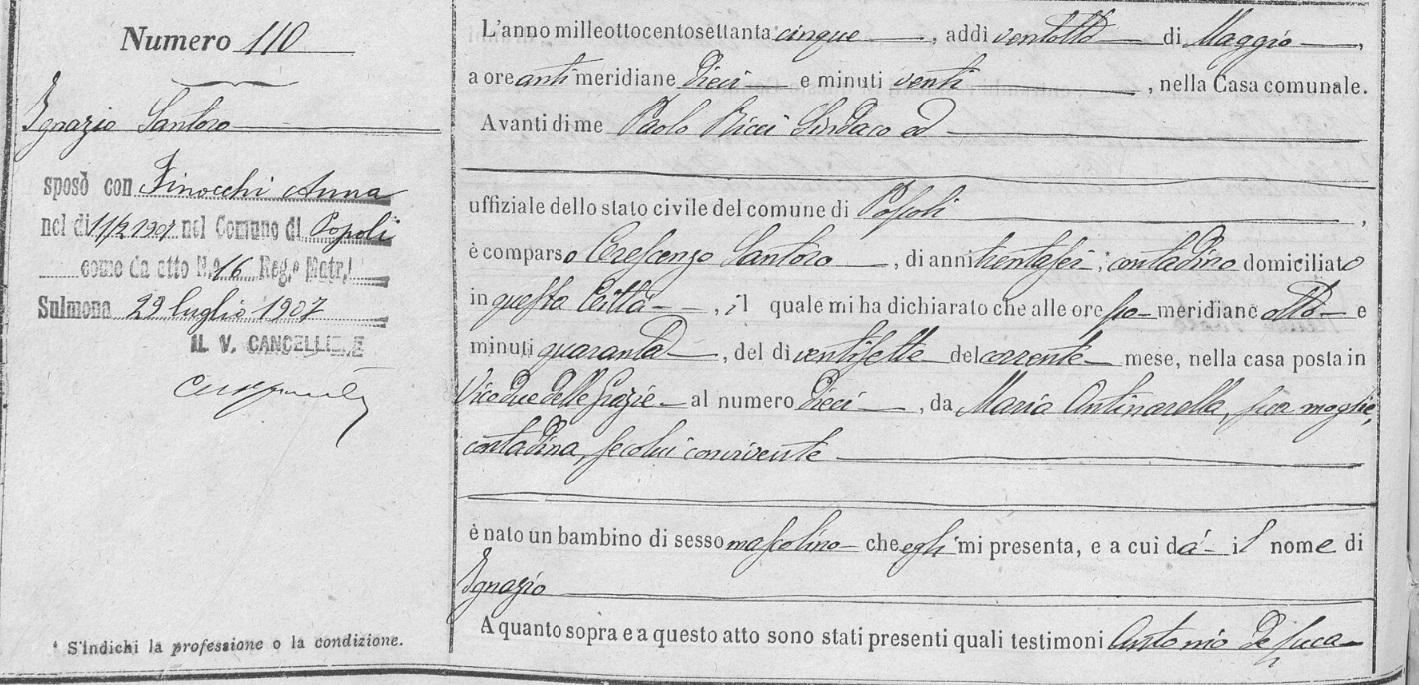 Ignazio Santoro were married on February 11, 1907 in Popoli, Pescara, Abruzzo, Italy. She died.