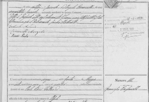 Maddalena Santoro were married on February 13, 1901 in Popoli, Pescara, Abruzzo, Italy. He died.