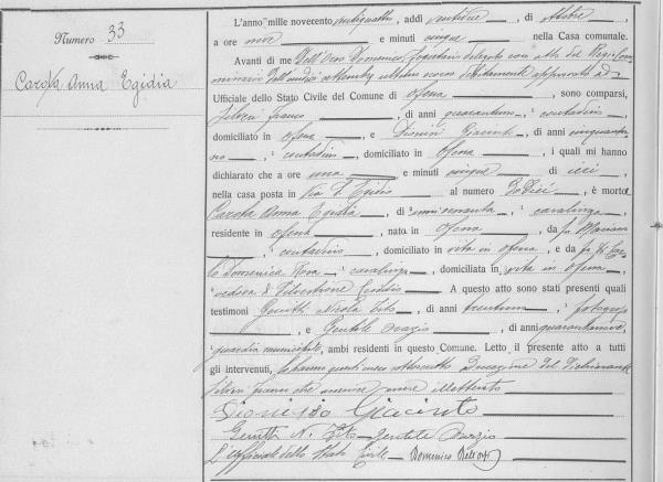 Anna Egidia Carota was born in 1864 in Ofena, L'Aquila, Abruzzo, Italy. She and