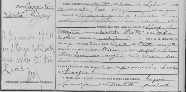 Giorgio Malatesta was born on July 30, 1894 in San Giorgio La Montagna, Benevento, Campania, Italy. He and