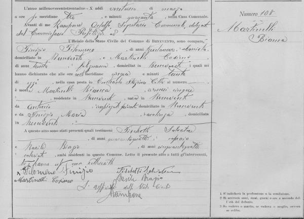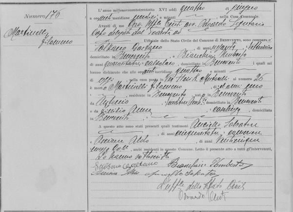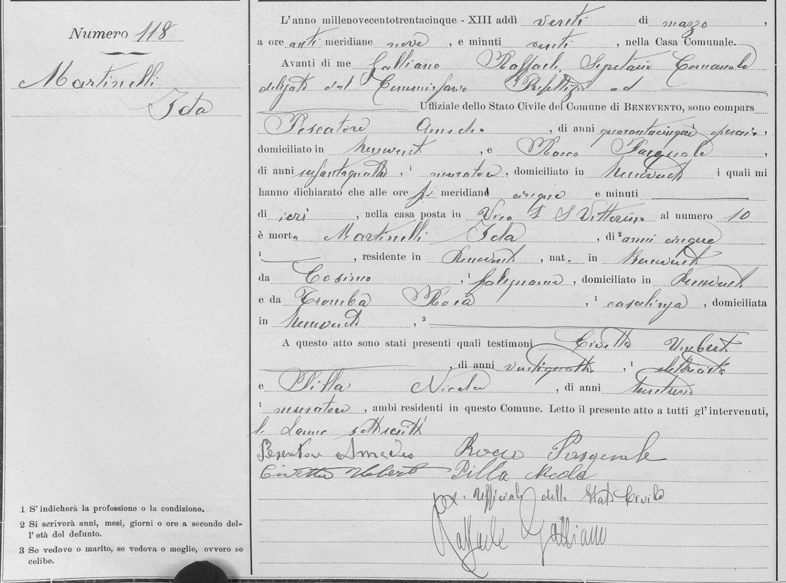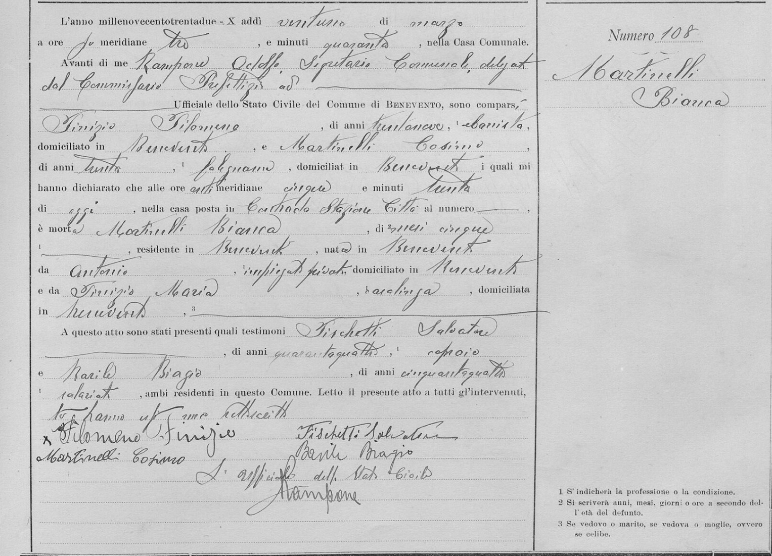 Grazia Martinelli were married on June 28, 1934 in Benevento, Benevento, Campania, Italy. He died.