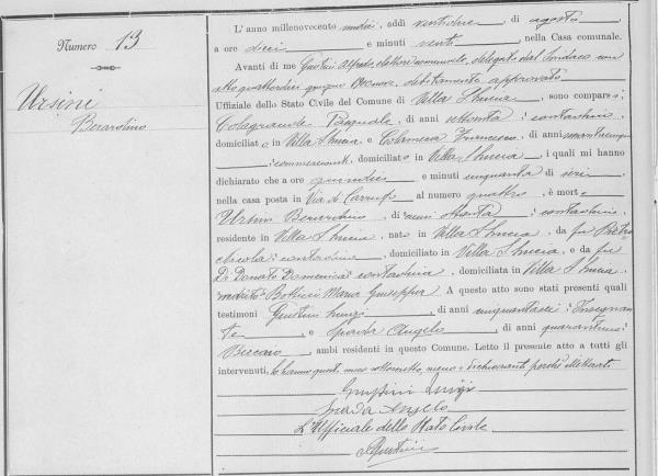 Berardino Ursini was born in 1831 in Villa Santa Lucia Degli Abruzzi, L'Aquila, Abruzzo, Italy. He and
