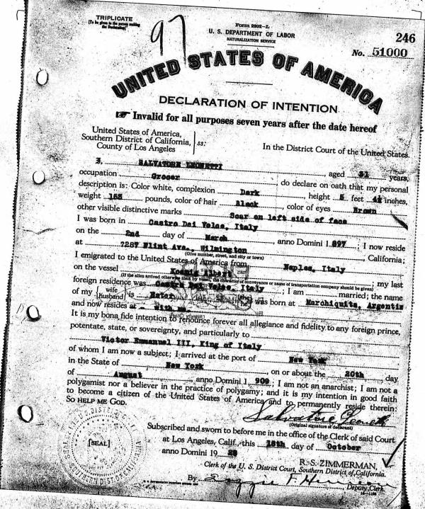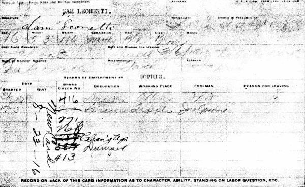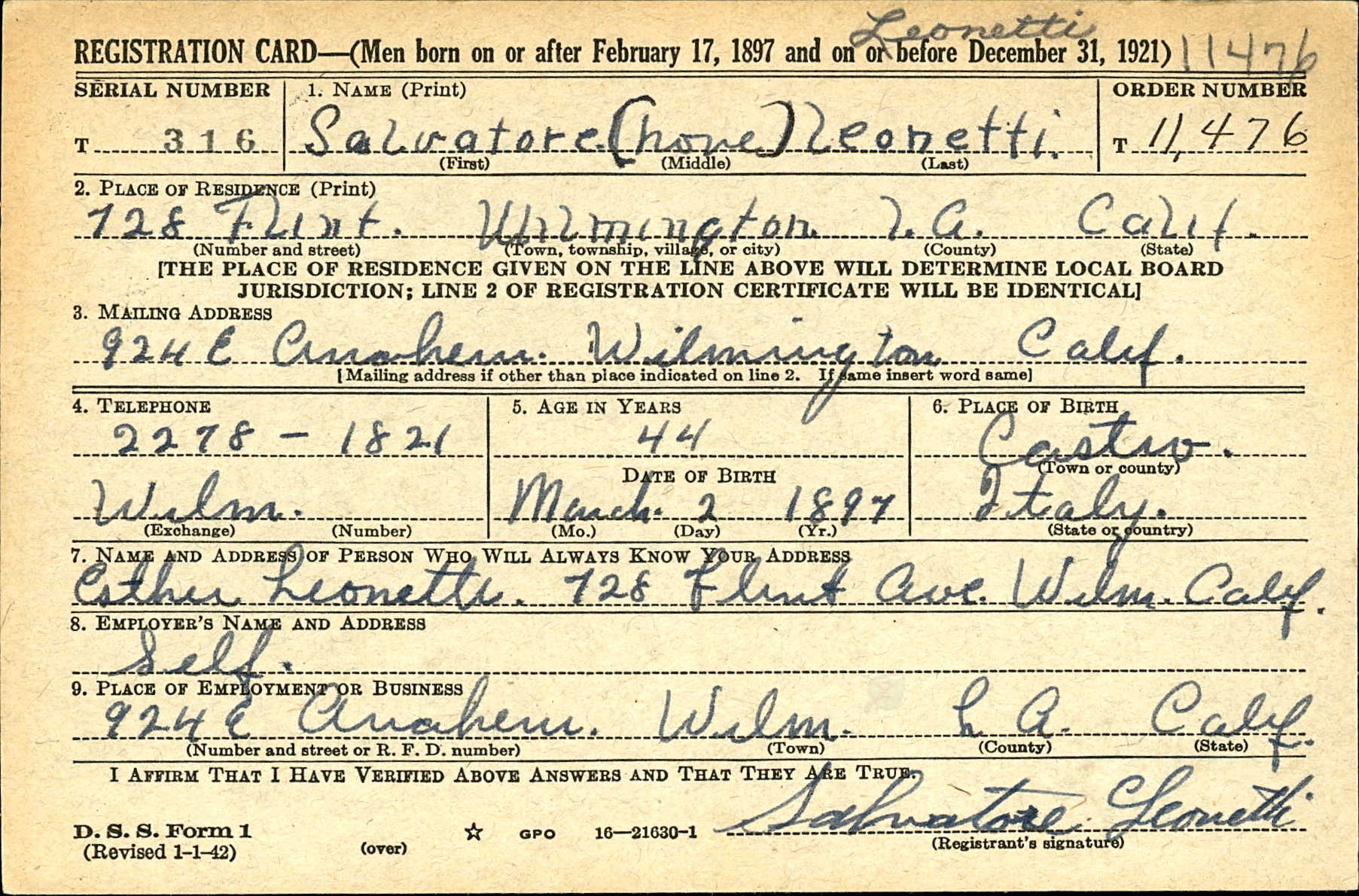 Salvatore "Sam" Leonetti was born on March 2, 1897 in Castro dei Volsci, Frosinone, Lazio, Italy. He and