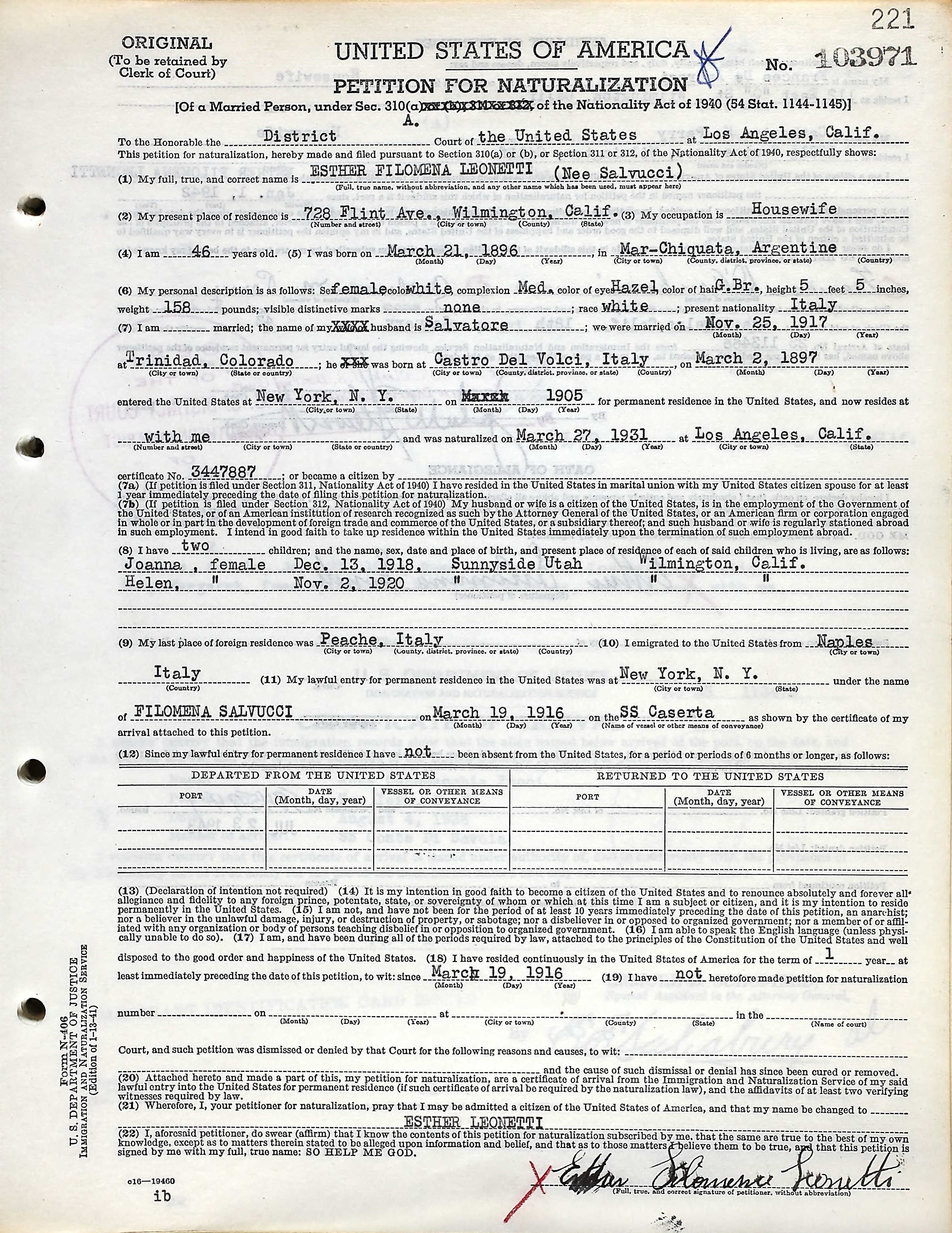 Esther Filomena Salvucci was born on March 21, 1896 in Marchiquita, Cordoba, Argentina. She and