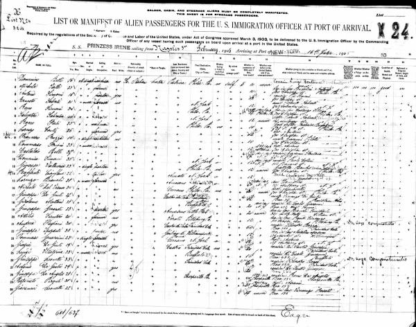 Giuseppe Leonetti 1905 Ship Departure Manifest, Line 26