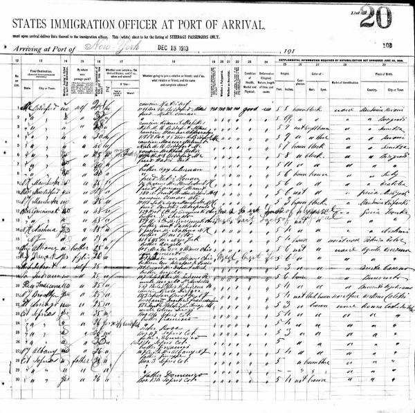 Leonetti Family 1913 Ship Arrival Manifest, Lines 28-29