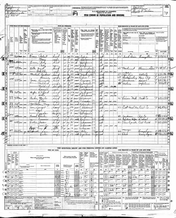 Leonetti Family 1950 Federal Census California, Lines 15-18