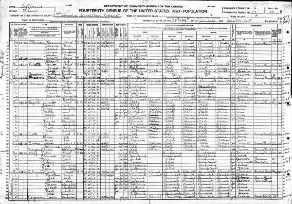 Rapolla Family 1920 Federal Census California, Lines 70-79