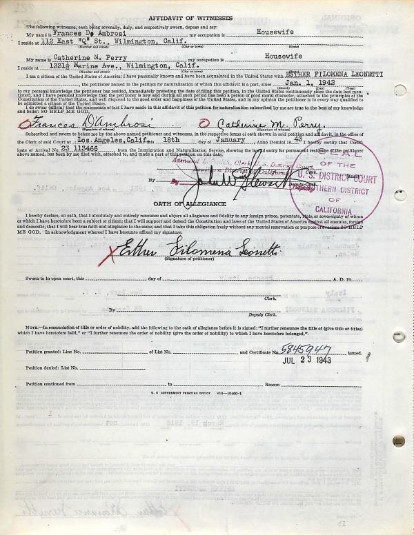Helen Leonetti were married on October 12, 1939 in Wilimington, Los Angeles, California, USA. He died.