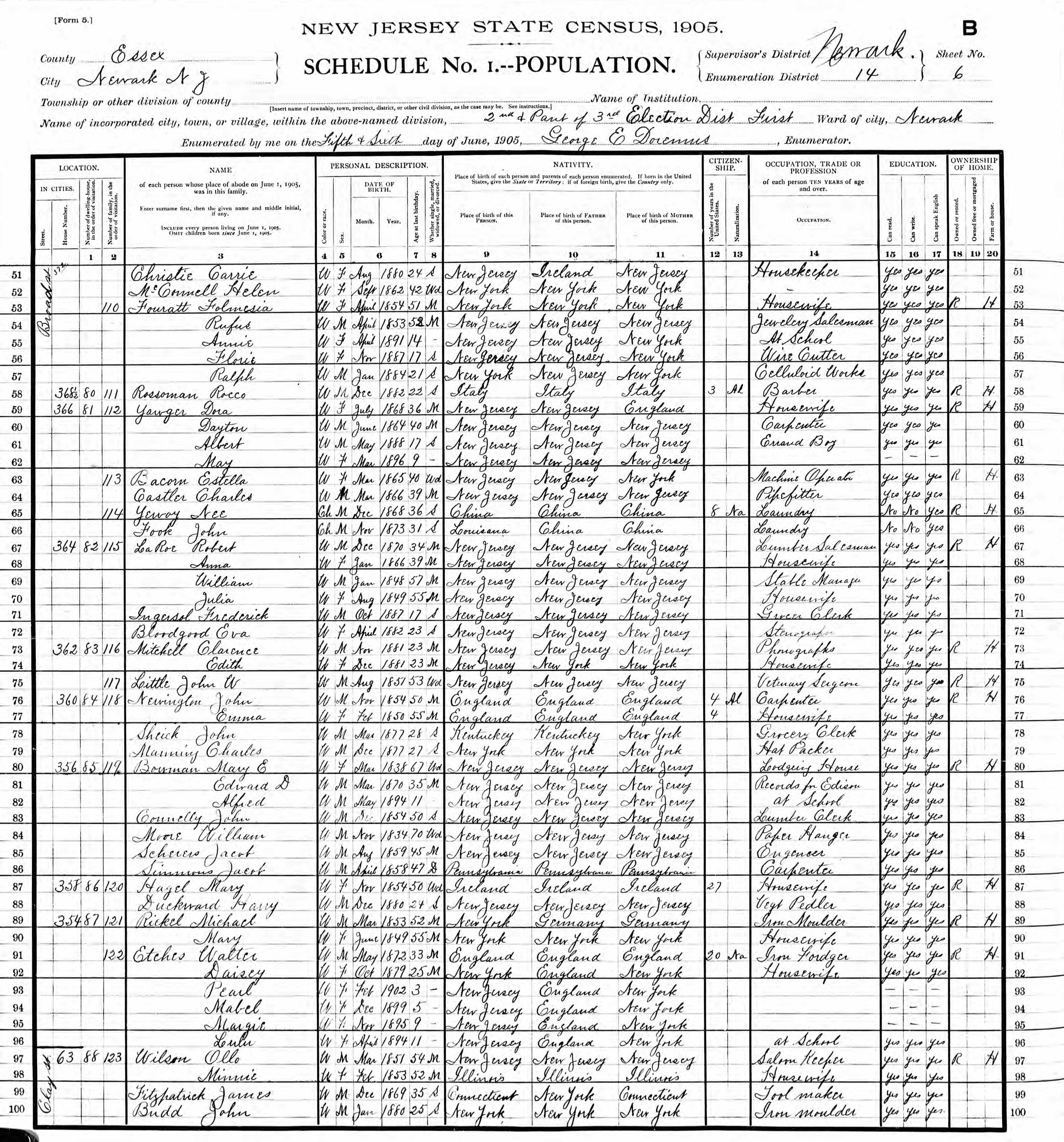 Etches Family 1900 Federal Census New Jersey, Lines 34-37