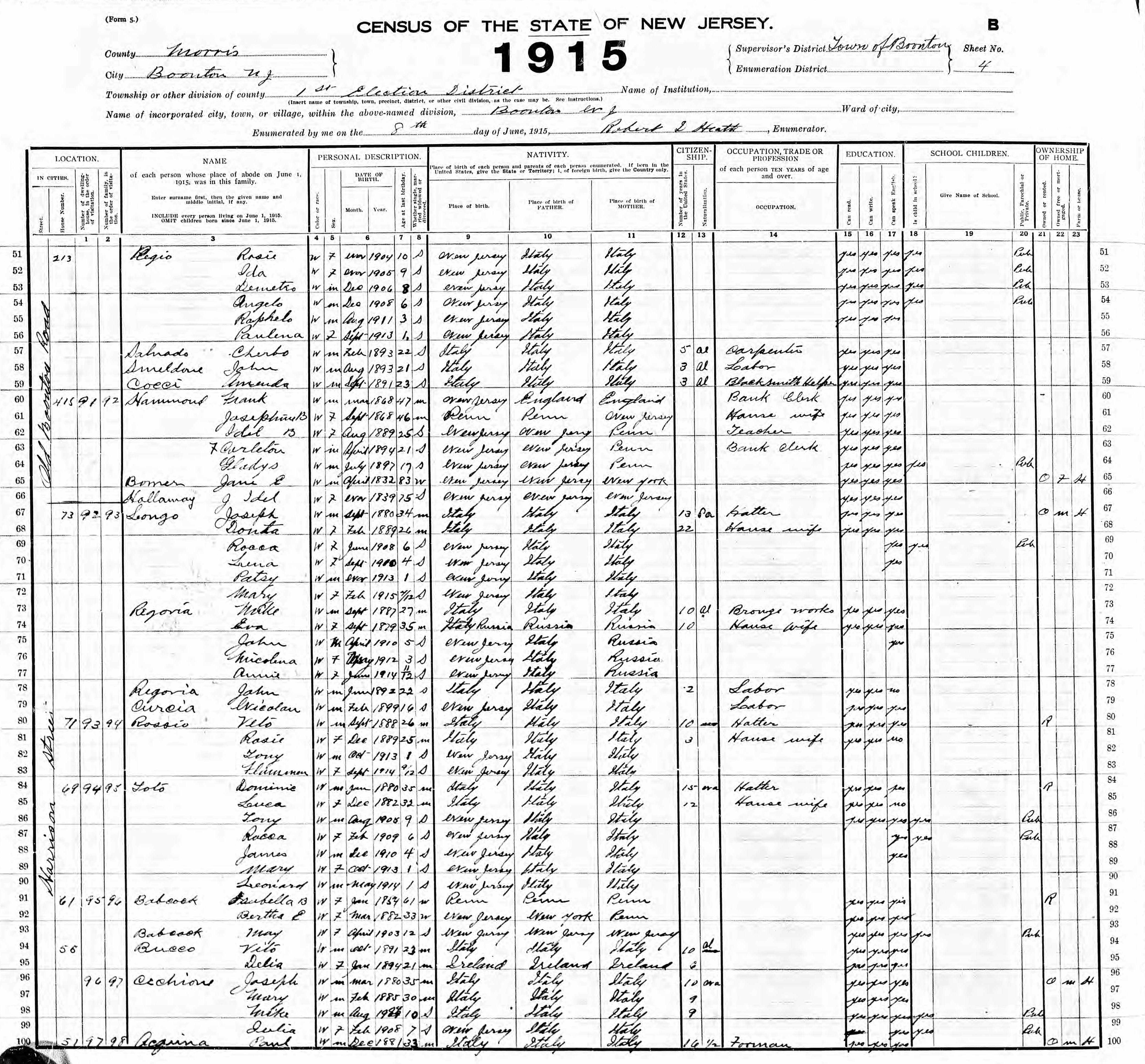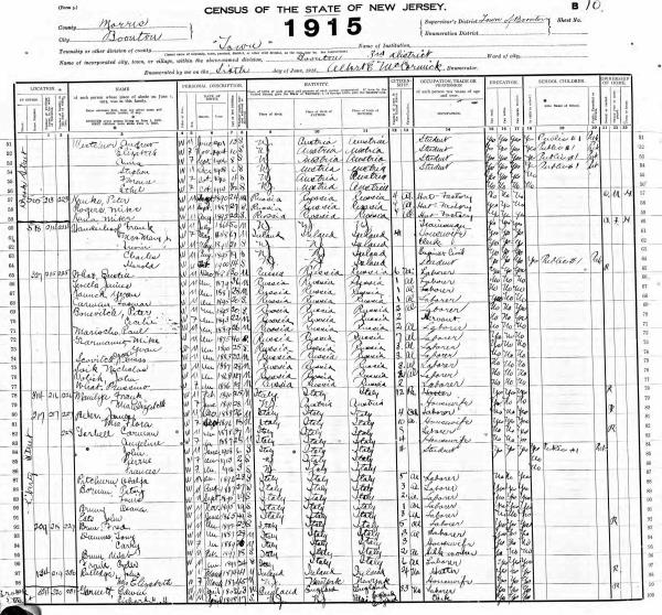 Longo Family 1915 State Census New Jersey, Lines 67-79