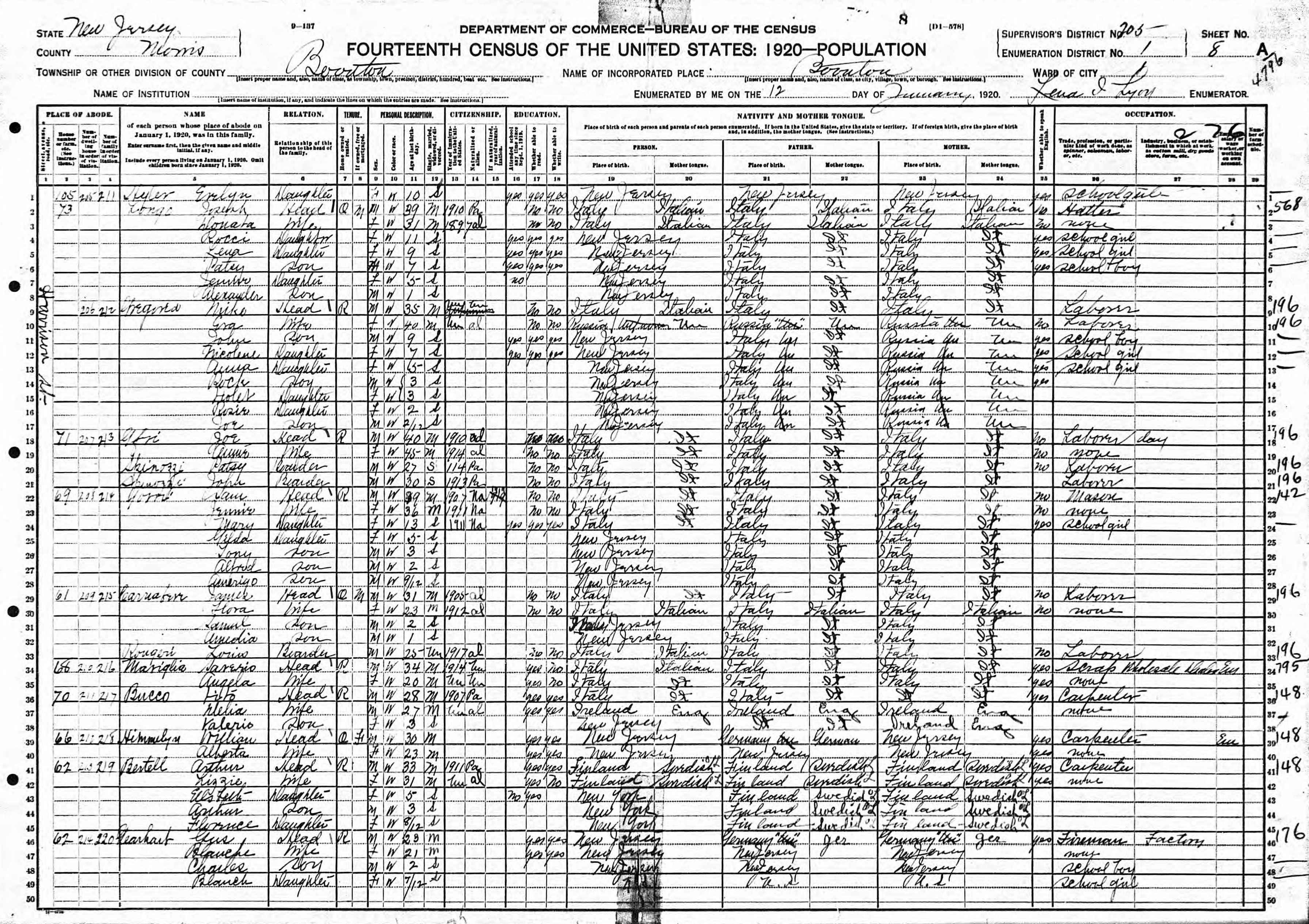 Longo Family 1920 Federal Census New Jersey, Lines 2-8