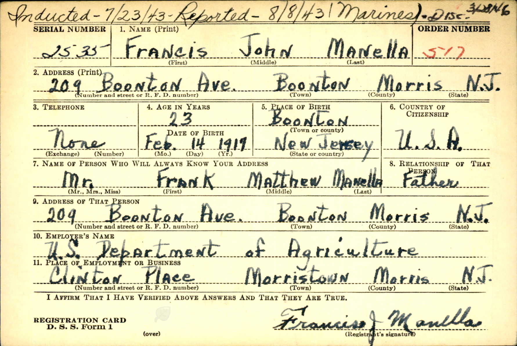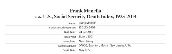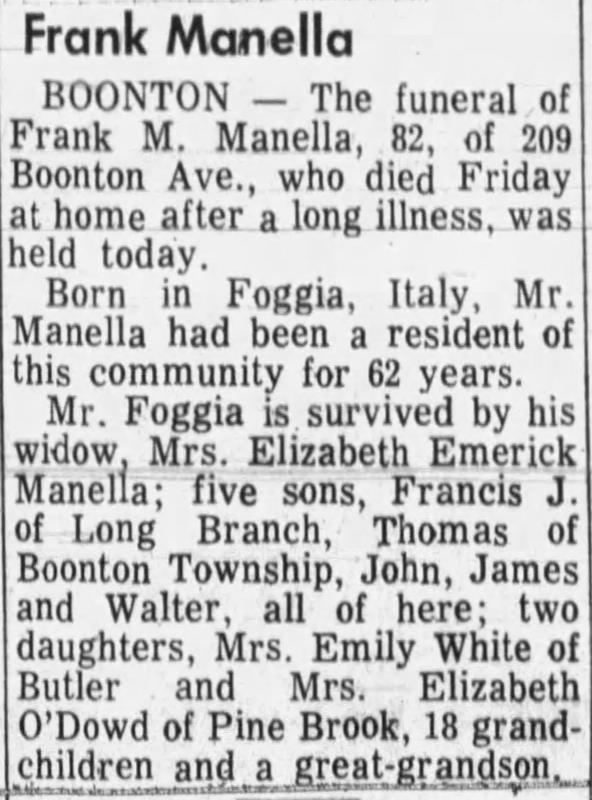 Francis John Minelli was born on February 14, 1917 in Boonton, Morris, New Jersey, USA. He died.