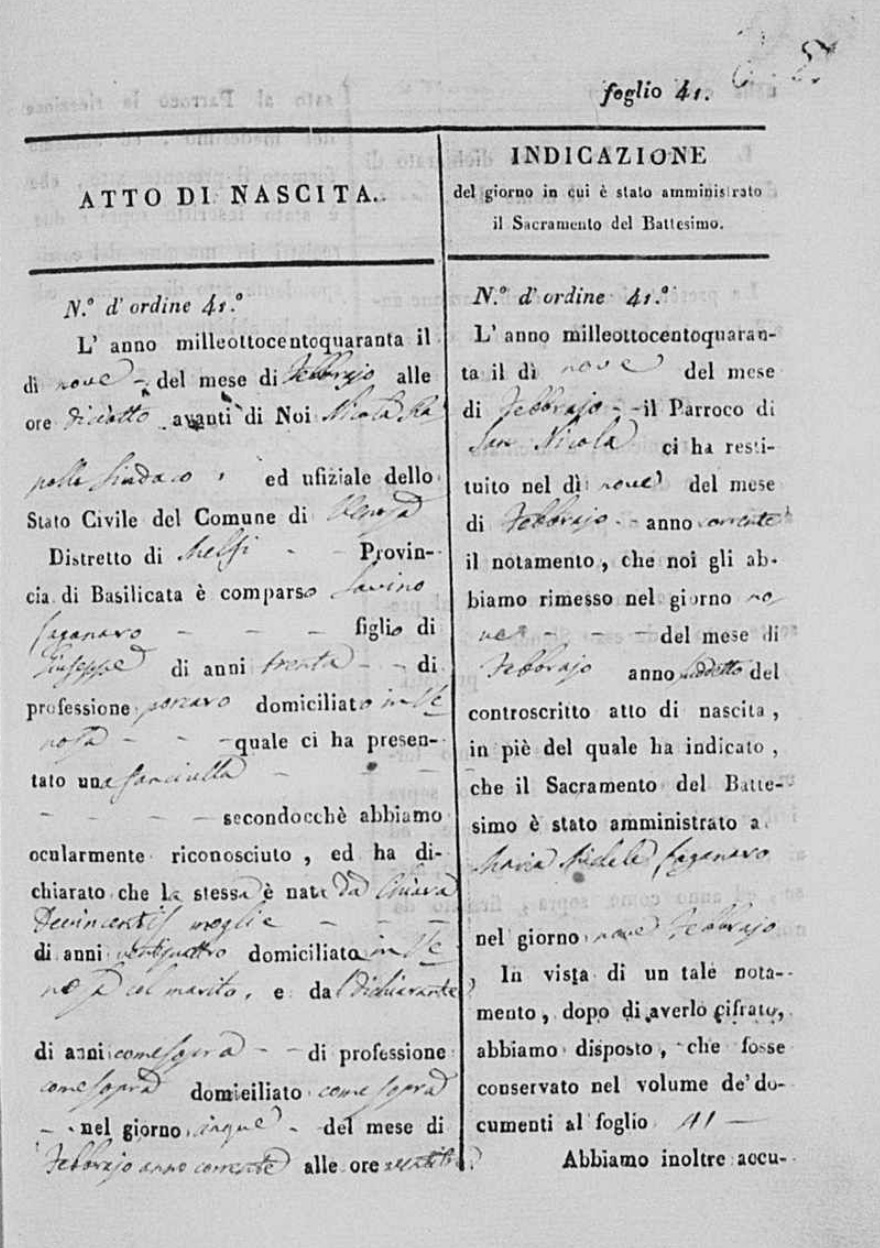 Nicola Zaccagrino were married on February 14, 1845 in Venosa, Potenza, Basilicata, Italy. She and