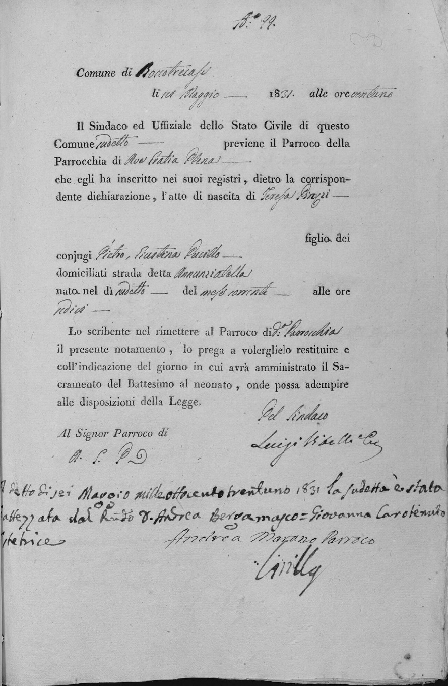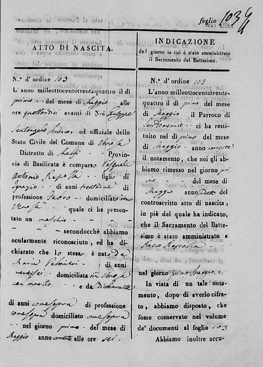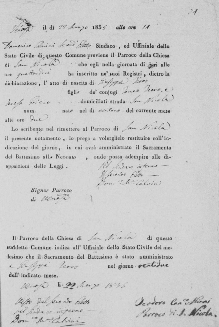 Pasquale Antonio Rapolla was born in 1806 in Venosa, Potenza, Basilicata, Italy. He and