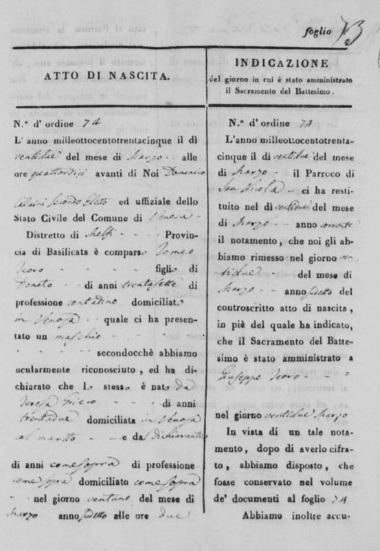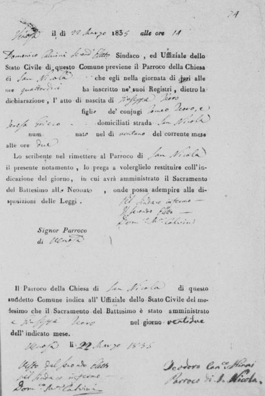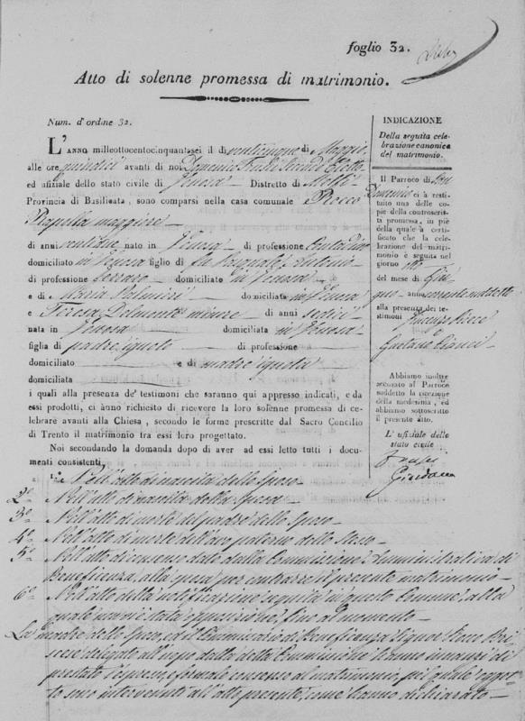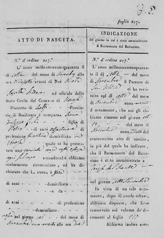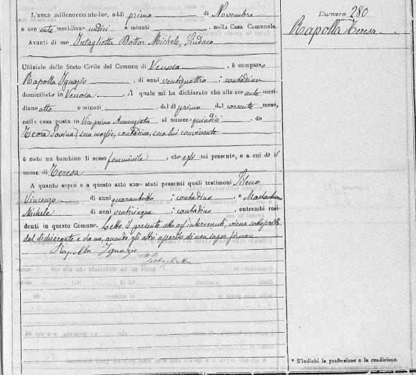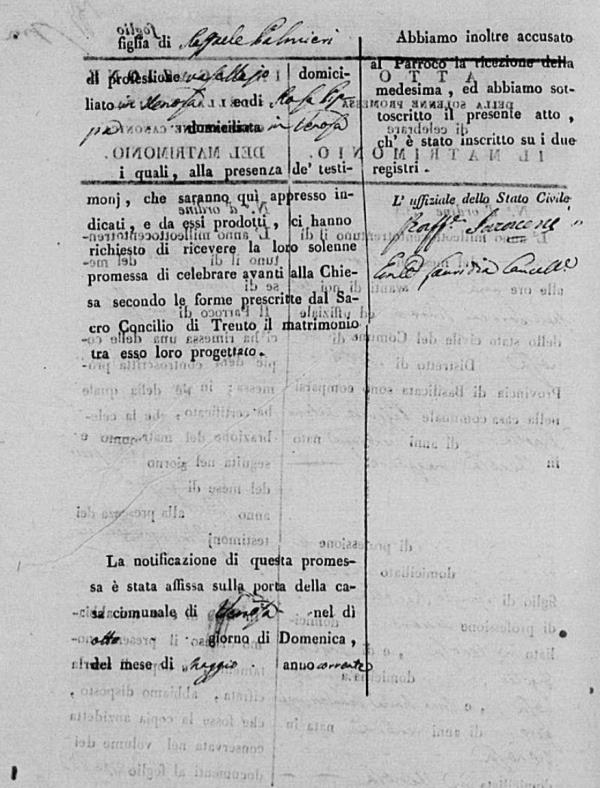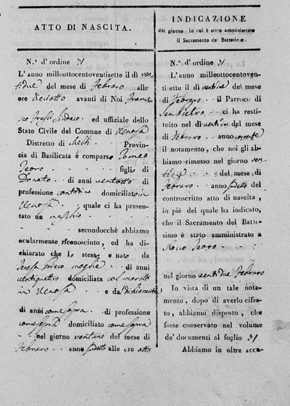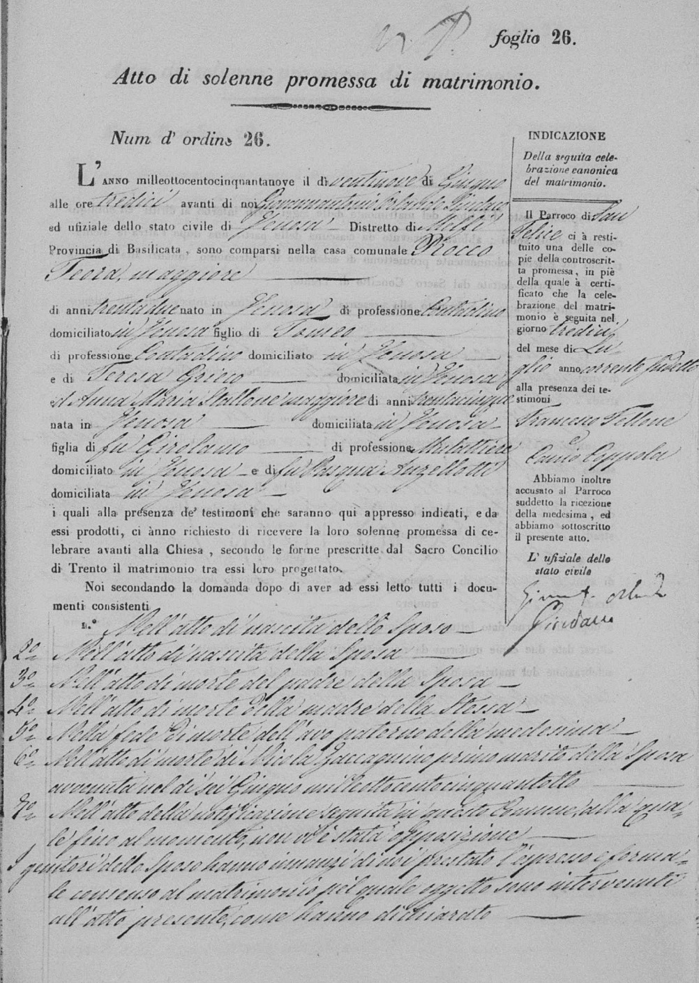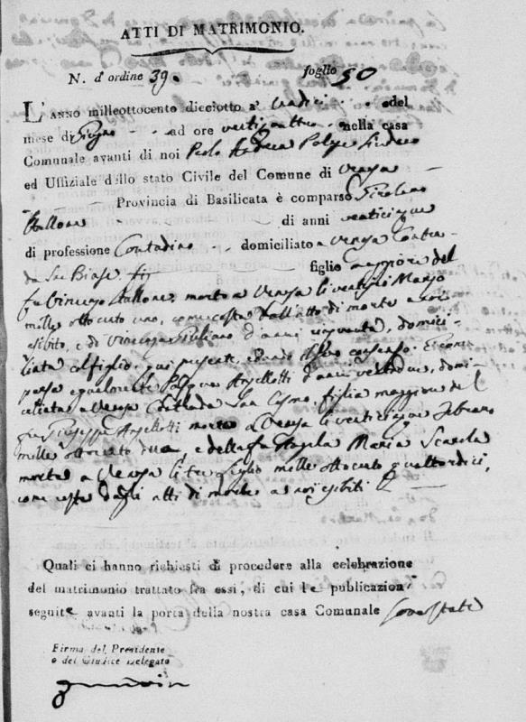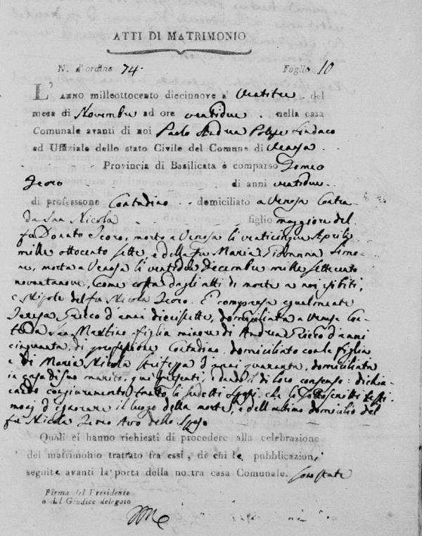 Teresa Grieco were married on November 23, 1819 in Venosa, Potenza, Basilicata, Italy. He died.