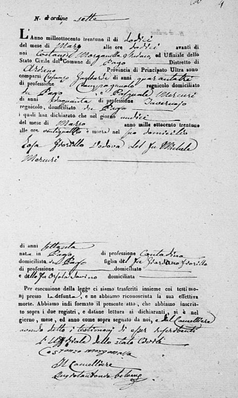 Rosa Fiorillo were married. He died on May 7, 1826, at age ~72, in Pago Veiano, Benevento, Campania, Italy.