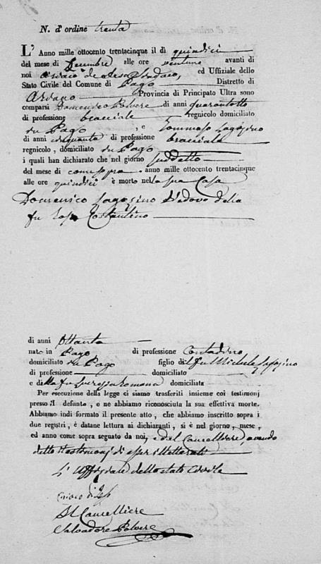 Rosa Constantino were married. He died on December 15, 1835, at age ~80, in Pago Veiano, Benevento, Campania, Italy.