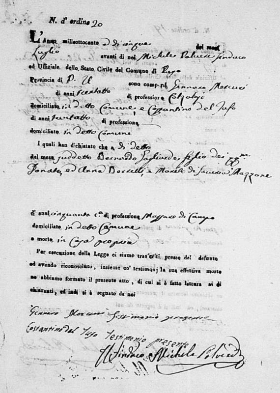 Saveria Mazzone were married. He died on July 5, 1819, at age ~55, in Pago Veiano, Benevento, Campania, Italy.