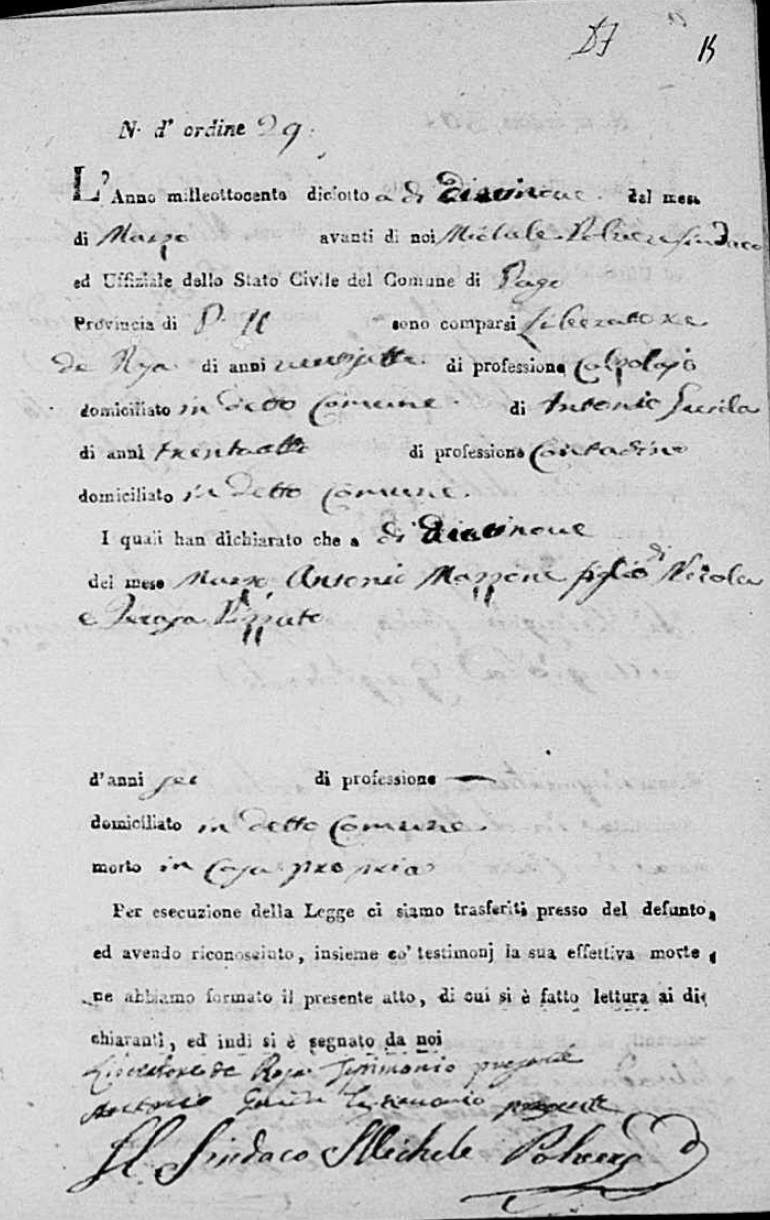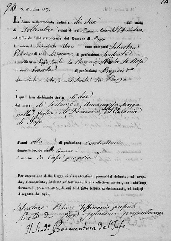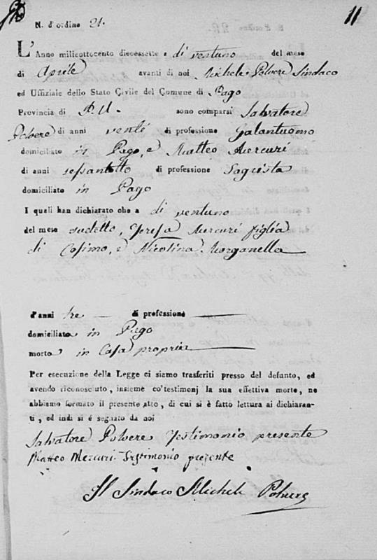 Lucia De Ieso were married. He died on May 28, 1817, at age ~33, in Pago Veiano, Benevento, Campania, Italy.