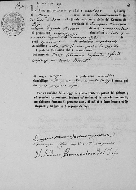 Vito Gagliardi was born in 1784 in Pago Veiano, Benevento, Campania, Italy. He and