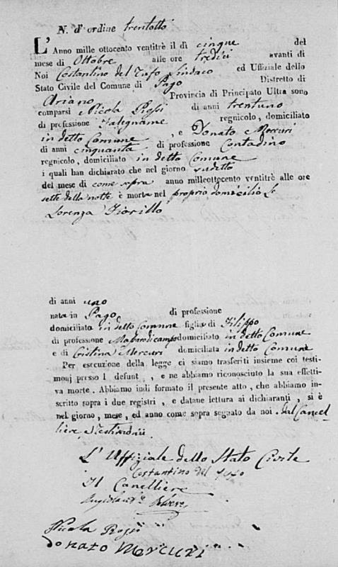 Lorenza Fiorillo was born in 1822 in Pago Veiano, Benevento, Campania, Italy. She died on October 5, 1823, at age ~1, in Pago Veiano, Benevento, Campania, Italy.