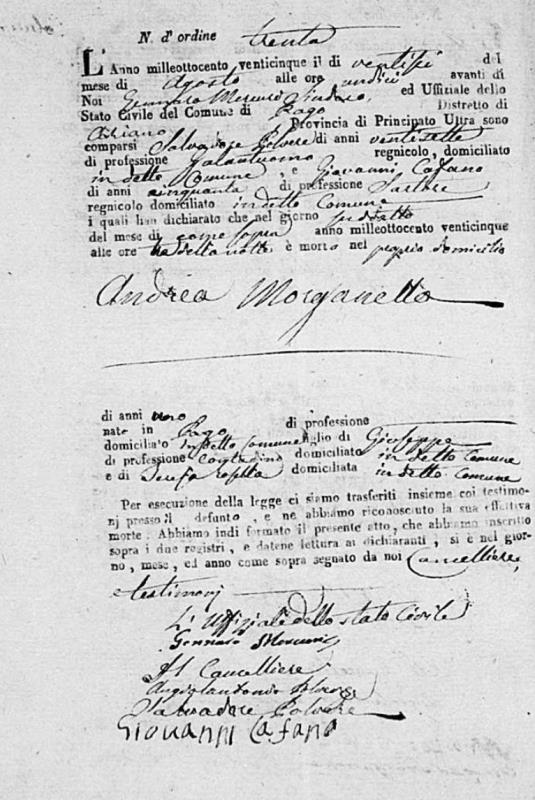 Andrea Morganella was born in 1824 in Pago Veiano, Benevento, Campania, Italy. He died on August 26, 1825, at age ~1, in Pago Veiano, Benevento, Campania, Italy.