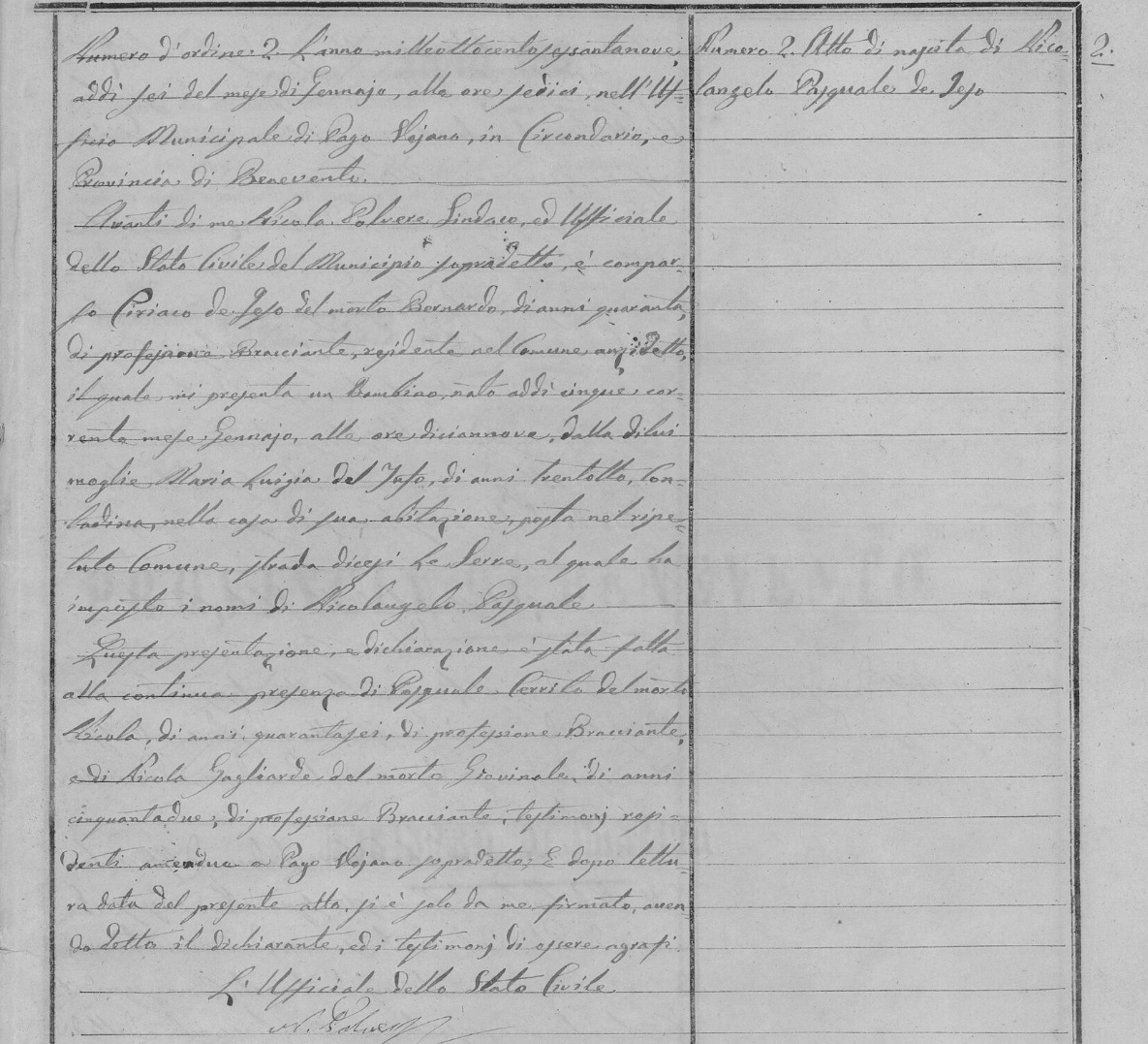 Nicolamaria De Ieso was born in 1859 in Pago Veiano, Benevento, Campania, Italy. He and