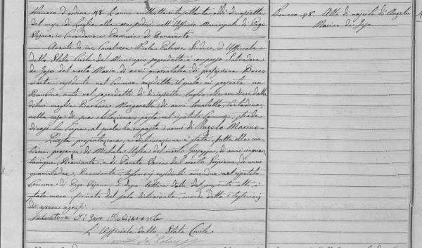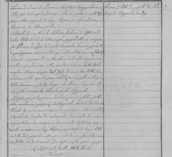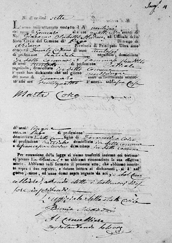 Maria Rosa De Ieso were married. He died on January 9, 1933, at age ~74, in Pago Veiano, Benevento, Campania, Italy.