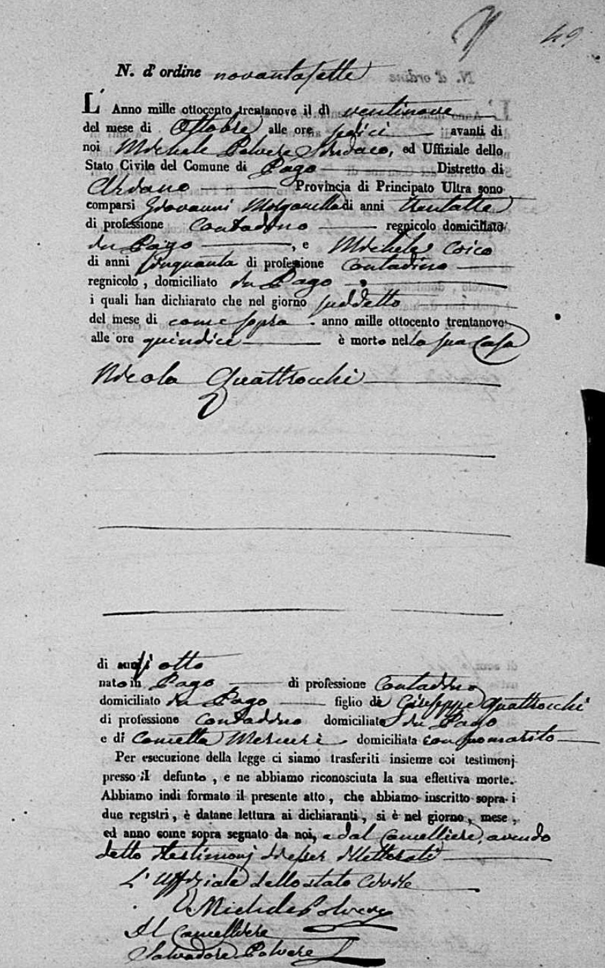 Nicola Quattrocchi was born in 1831 in Pago Veiano, Benevento, Campania, Italy. He died on October 29, 1839, at age ~8, in Pago Veiano, Benevento, Campania, Italy.