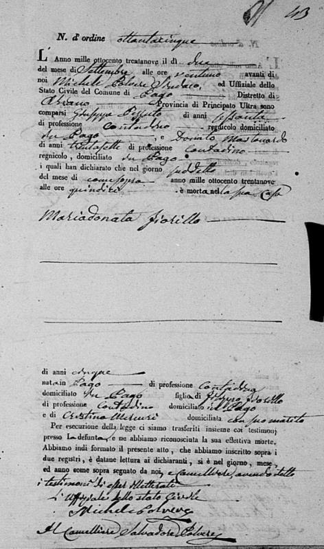 Mariadonata Fiorillo was born in 1834 in Pago Veiano, Benevento, Campania, Italy. She died on September 2, 1839, at age ~5, in Pago Veiano, Benevento, Campania, Italy.