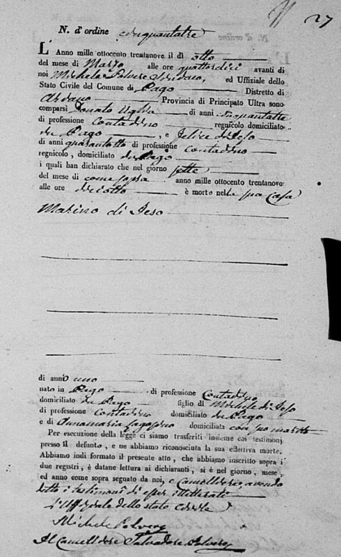Rita De Ieso were married. He died on January 15, 1841, at age ~64, in Pago Veiano, Benevento, Campania, Italy.