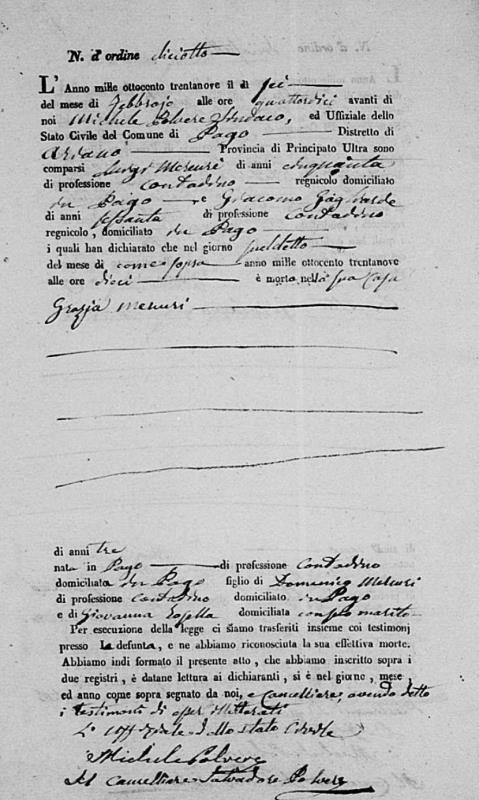 Grazia Mercuri was born in 1836 in Pago Veiano, Benevento, Campania, Italy. She died on February 6, 1839, at age ~3, in Pago Veiano, Benevento, Campania, Italy.