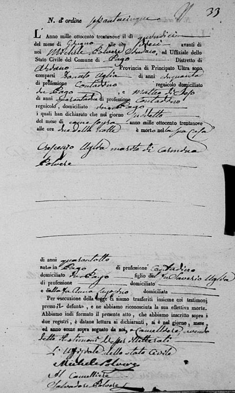 Crescenzo Uglia was born in 1791 in Pago Veiano, Benevento, Campania, Italy. He and
