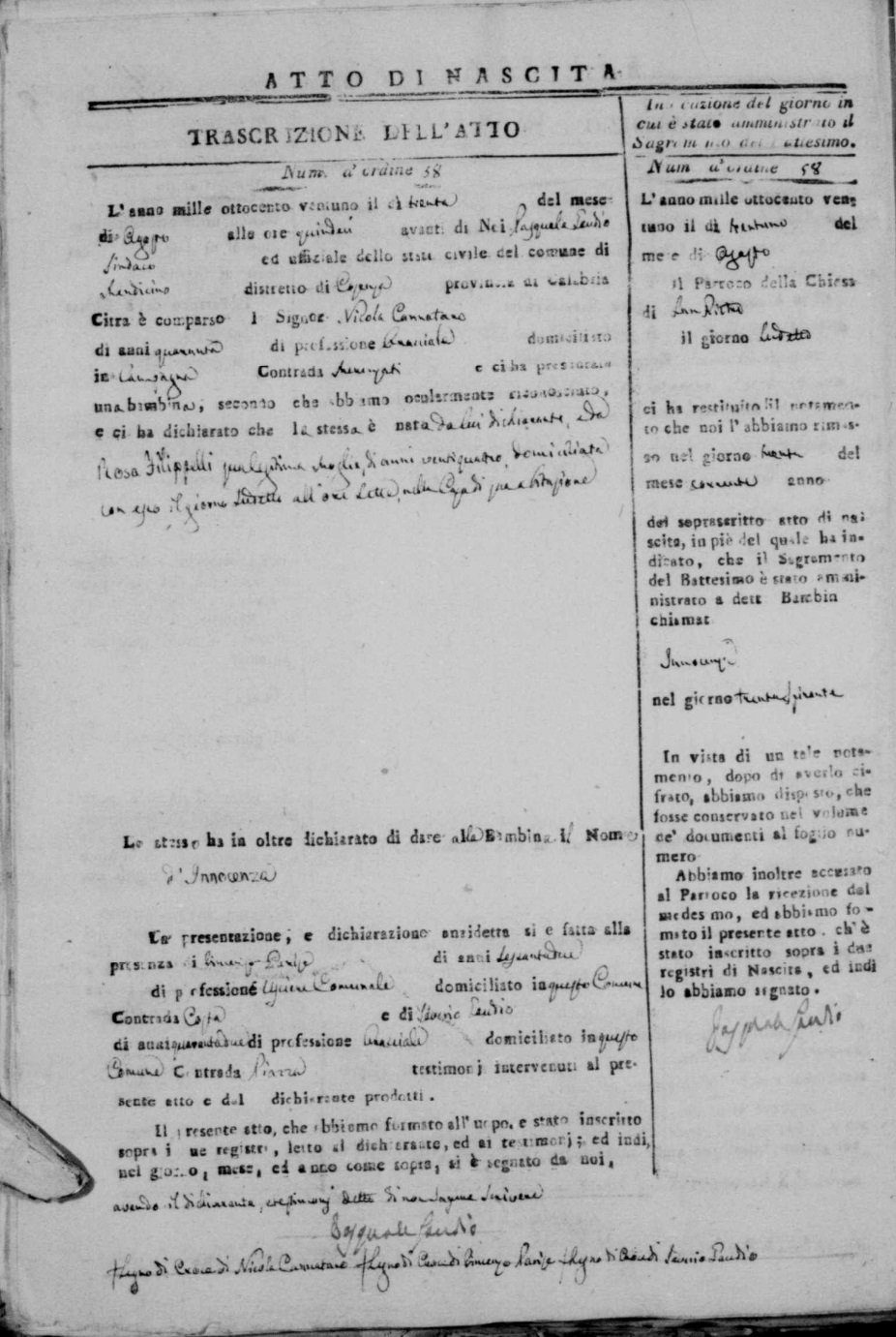 Innocenza Connataro was born on August 30, 1821 in Mendicino, Cosenza, Calabria, Italy. She and