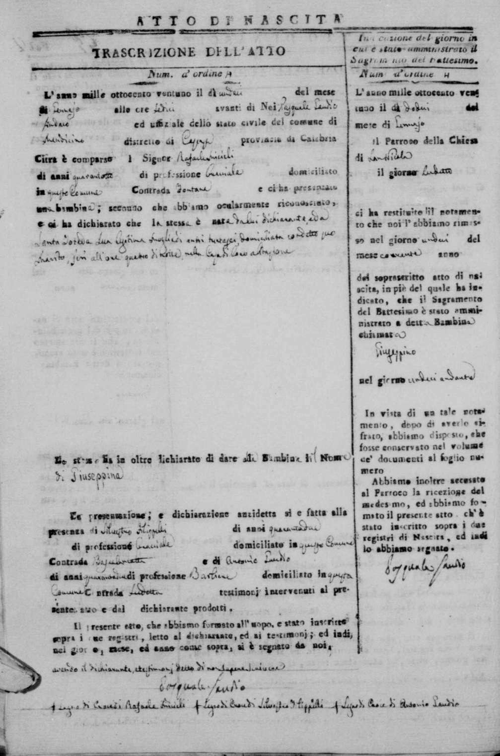 Teresa Iantorno was born in 1781 in Cerisano, Cosenza, Calabria, Italy. She and