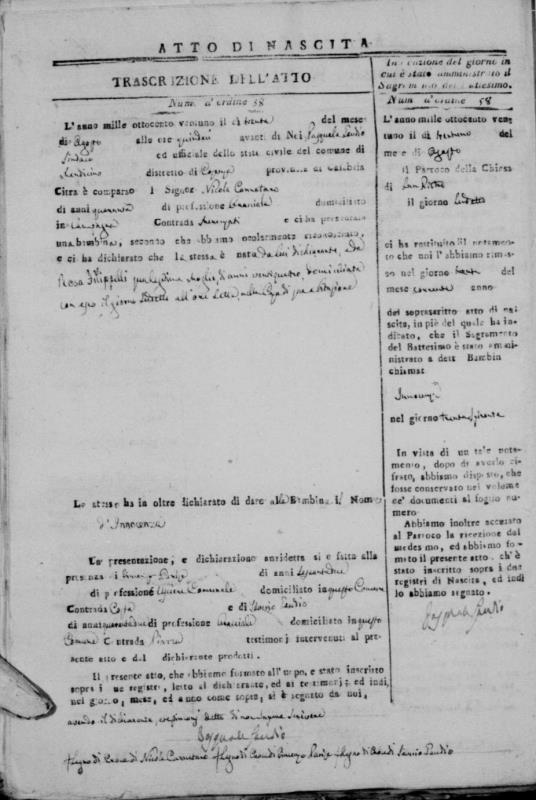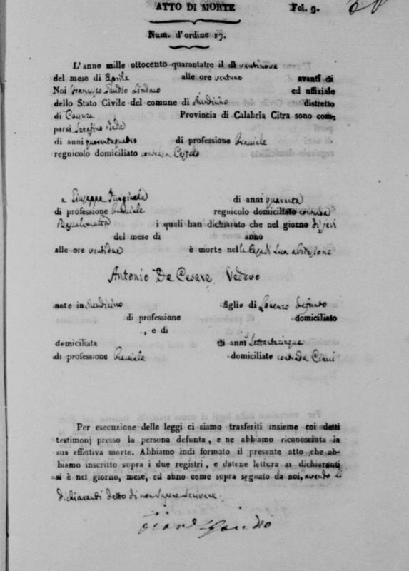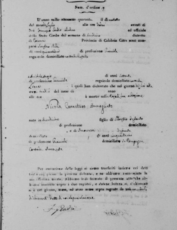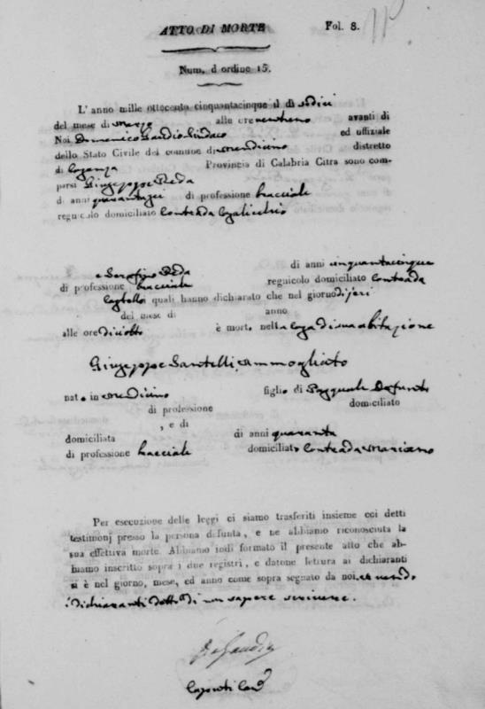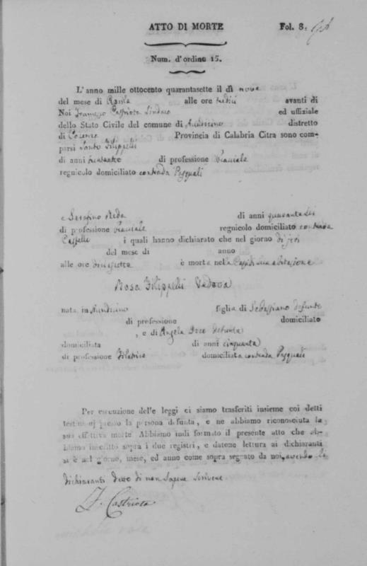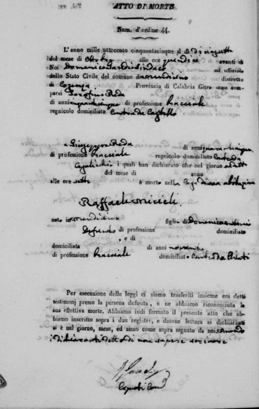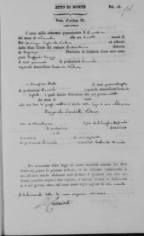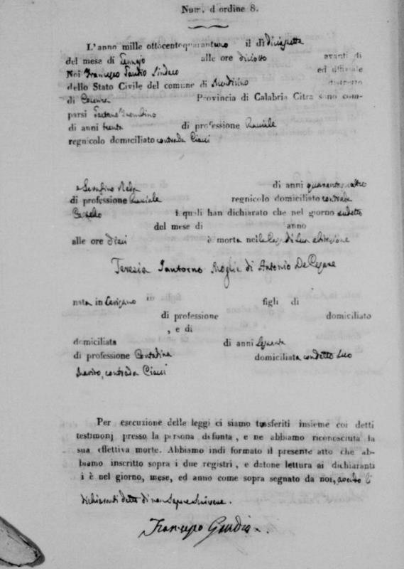Santa Toteda were married. He died on October 17, 1855, at age ~82, in Mendicino, Cosenza, Calabria, Italy.