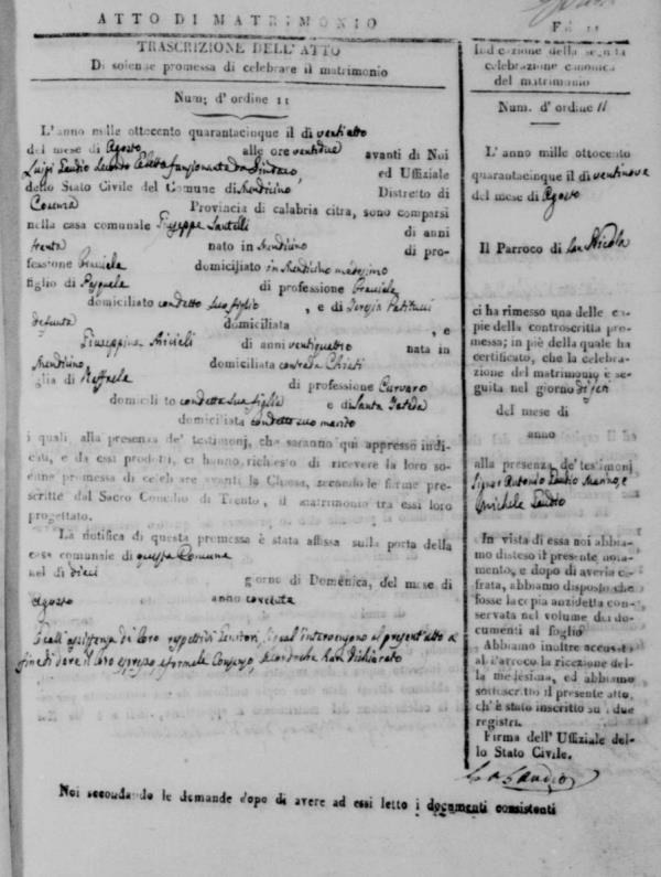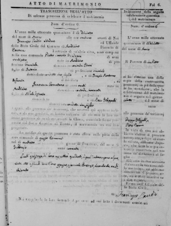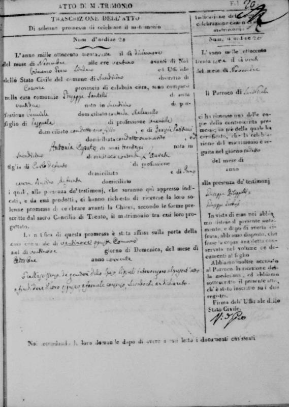 Antonia Caputo were married on November 20, 1837 in Mendicino, Cosenza, Calabria, Italy. He and